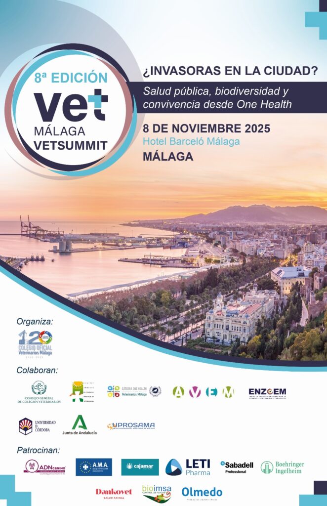 El Ilustre Colegio Oficial de Veterinarios de Málaga organiza el próximo 8 de noviembre de 2025 la octava edición del Málaga VetSummit, uno de los congresos de referencia en el ámbito veterinario nacional. El encuentro se celebrará en el Hotel Barceló Málaga y reunirá a expertos de distintas disciplinas para debatir sobre un tema de gran actualidad: “Invasoras en la ciudad: salud pública, biodiversidad y convivencia desde One Health”.