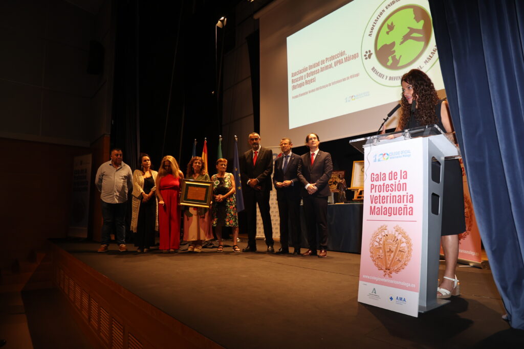La Asociación Unidad de Protección, Rescate y Defensa Animal, UPRA Málaga (Refugio Reyes), ha recibido el premio al Bienestar Animal 2025 del Colegio de Veterinarios de Málaga durante la celebración de la segunda Gala de la Profesión Veterinaria Malagueña que tuvo lugar el jueves 2 de octubre en el Edificio de Turismo Andaluz (Antiguo Parador de San Rafael).