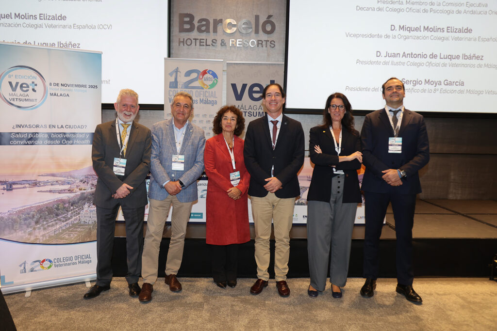 El acto inaugural contó con la participación de Juan Antonio de Luque, presidente del Colegio de Veterinarios de Málaga; Miquel Molins, vicepresidente del Consejo General de Colegios Veterinarios de España; Mariela Checa, presidenta de UPROSAMA; y Sergio Moya, presidente del Comité Científico.