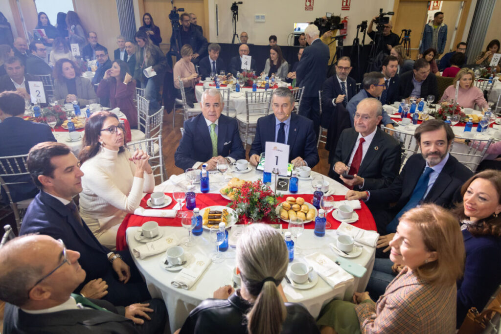 Peñate en la mesa presidencial del encuentro-coloquio pudo departir con el resto de comensales sobre la situación actual de la salud pública en la provincia. Algunas de las autoridades y personalidades que ocupaban la mesa presidencial eran el consejero de Sanidad, Presidencia y Emergencias, Antonio Sanz; el alcalde de Málaga, Francisco de la Torre; la delegada del Gobierno de la Junta de Andalucía, Patricia Navarro; la directora-gerente del Servicio Andaluz de Salud, Valle García; el presidente del Colegio de Médicos, Pedro J. Navarro; el presidente del Colegio de Farmacéuticos, Francisco Criado; la presidenta de la Unión Profesional Sanitaria de Málaga y decana del Colegio Oficial de Psicólogos de Andalucía Oriental, Mariela Checa; entre otros.