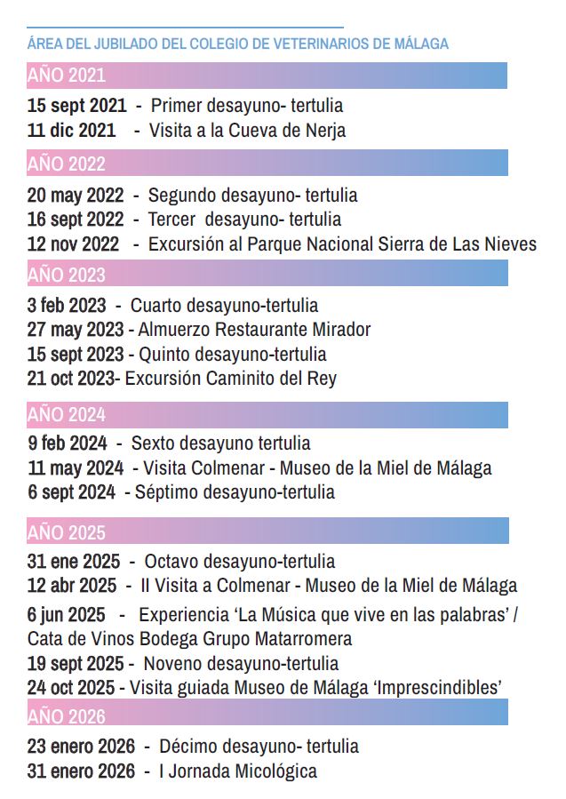 Una cita organizada por el Área de Jubilados del Colegio de Veterinarios de Málaga, con el cariño y el respeto que merecen quienes han dedicado toda una vida a la profesión.