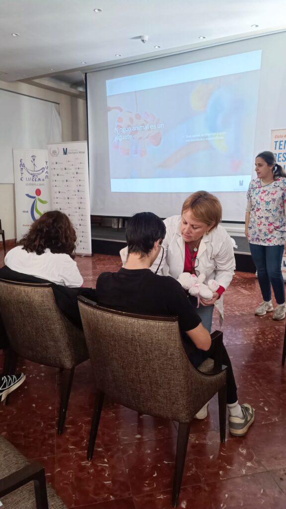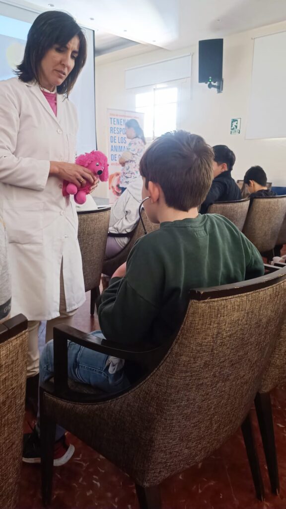 Los estudiantes se convirtieron en veterinarios por un día, utilizando fonendoscopios, guantes y material clínico real, además de participar en juegos didácticos con fichas educativas y peluches.