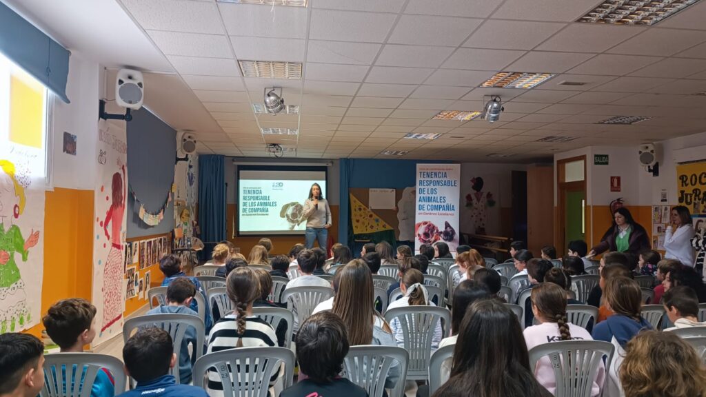 El Colegio de Veterinarios de Málaga ha retomado con fuerza su ciclo de conferencias de Tenencia Responsable de Animales de Compañía en centros educativos tras el parón de Semana Blanca. Esta iniciativa, impulsada por la institución colegial con la colaboración voluntaria de sus veterinarios colegiados, busca promover el cuidado integral de los animales, la adopción, la vacunación y la esterilización, además de fomentar el respeto a las normas de seguridad desde la infancia.