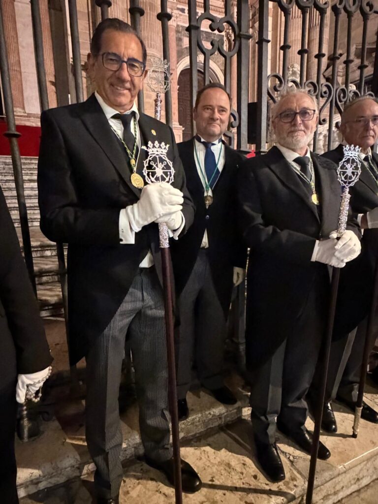 La implicación del colectivo veterinario también se hizo visible en la estación de penitencia. Una amplia comitiva de diez profesionales acompañó los tronos, la comitiva veterinaria del Señor de la Puente estuvo encabezada por el secretario del Colegio de Veterinarios, Andrés Romero Lagos y destacados académicos como Santiago Vega García, catedrático de Sanidad Animal de la Facultad de Veterinaria de la Universidad CEU; y Rafael Astorga Márquez, catedrático de Sanidad Animal en la Facultad de Veterinaria de Córdoba; además de los colegiados Juan Palma Alcántara, Francisco Cobo Martínez, Luis Miguel Izquierdo Elizo, Lucía Vázquez Ramos, María Isabel Martín Vellibre y Enrique Domínguez Sanchez-Lafuente. Por su parte, el presidente de Honor de la institución, Enrique Moya Barrionuevo, procesionó en la sección de la Virgen.