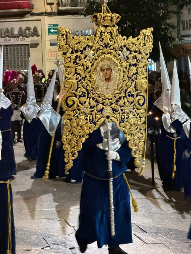 La advocación de la Santísima Virgen de la Paloma viene de cuando el Miércoles Santo de 1926 una paloma se posó sobre la imagen de la virgen y permaneció con ella hasta el Jueves Santo, dándole nombre y haciéndolas inseparables.