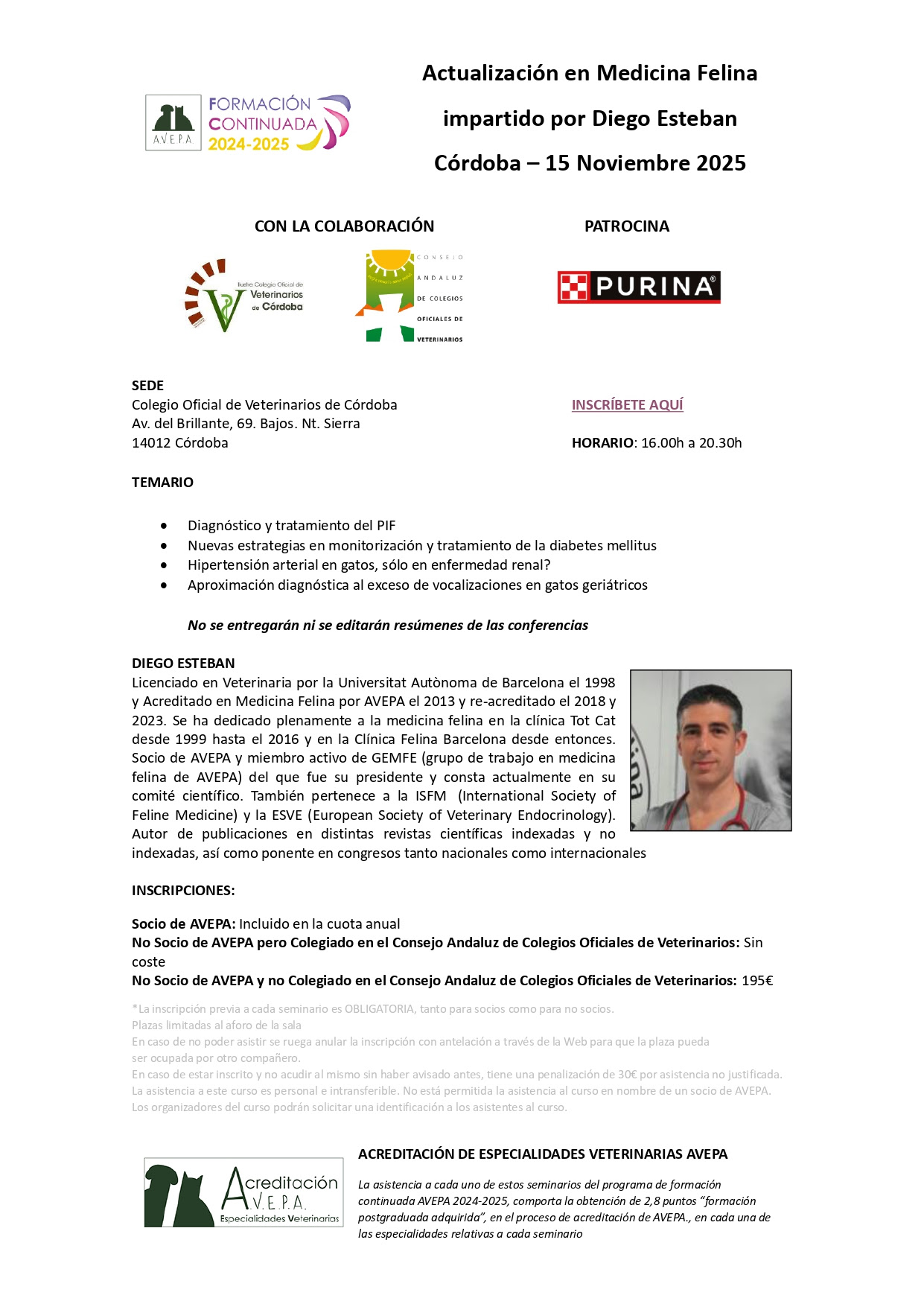 A continuación puedes consultar los cursos disponibles en formación propia y los cursos del Consejo Andaluz de Colegios Oficiales Veterinarios, así como otros cursos de formación externa.